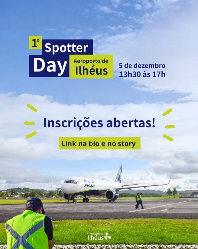 👉 Inscreva-se agora, garanta sua vaga e venha fazer parte do 1º Spotter Day de Ilhéus, um marco para os apaixonados por fotografia e aviação!