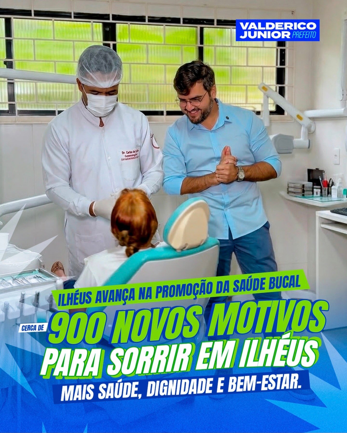 O prefeito Valderico Junior anunciou um avanço significativo na saúde pública de Ilhéus com a entrega de cerca de 900 próteses dentárias à população. A iniciativa, divulgada nas redes sociais, reforça o compromisso da gestão com políticas de saúde bucal e inclusão social. “Cuidar do sorriso também é cuidar de Ilhéus”, destacou o gestor, ao enfatizar que a ação vai além da estética, alcançando diretamente a qualidade de vida dos beneficiados.