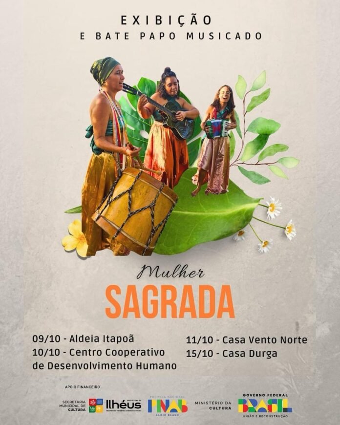 A cidade de Ilhéus se prepara para receber um evento repleto de sensibilidade, arte e ancestralidade. O curta-metragem “Mulher Sagrada” será exibido nos dias 9, 10, 11 e 15 de outubro, em diversos espaços culturais e comunitários, acompanhados de um bate-papo musicado com as artistas Adriana Duchat, Naiara Gramacho e Ana Diniz. A entrada é gratuita e aberta ao público.