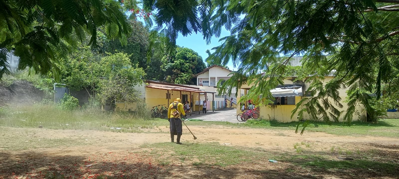 As equipes atuaram na área interna e externa da unidade, promovendo a retirada do mato e a limpeza do entorno, contribuindo para um espaço mais adequado às atividades educacionais, garantindo melhores condições estruturais para o funcionamento das unidades escolares.