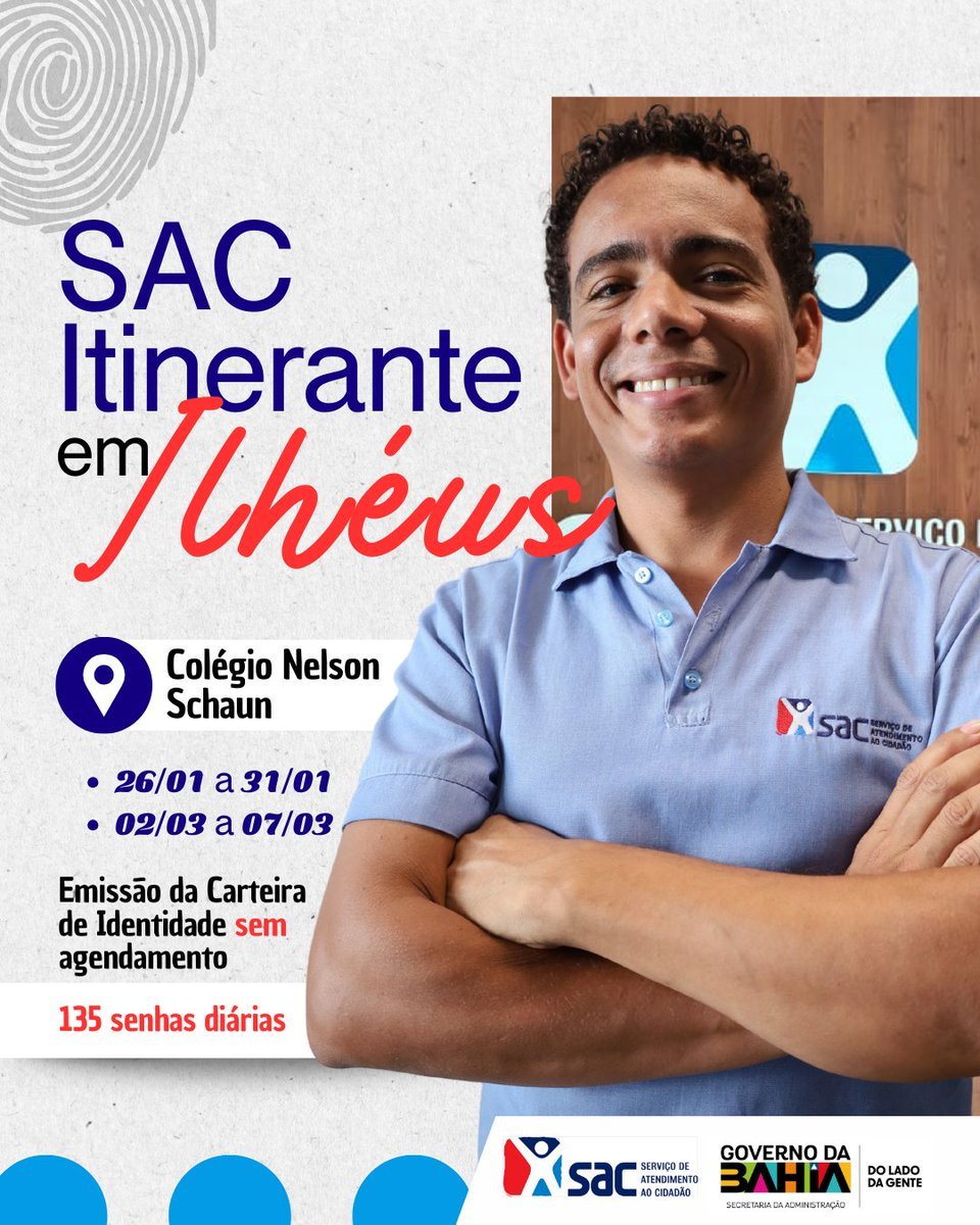 A Equipe do SAC Itinerante continua em Ilhéus, reforçando o compromisso de ampliar o acesso da população à Carteira de Identidade Nacional (CIN). A iniciativa atende a uma demanda histórica por serviços de documentação básica e facilita a vida de quem enfrenta dificuldades para agendamento ou deslocamento até unidades fixas do SAC. A ação representa um avanço importante na cidadania, sobretudo para pessoas em situação de vulnerabilidade social.