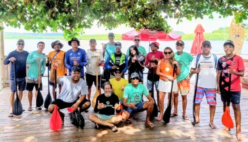 Um domingo especial reuniu várias gerações de praticantes de surf no município de Ilhéus, que comemora 53 anos de atividades ininterruptas. Numa parceria com o Clube Pontal Va’a e Associação dos Surfistas de Ilhéus, 19 pessoas remaram em 4 canoas havaianas da enseada da Sapetinga até a ilha de Itapitanga e vice versa.