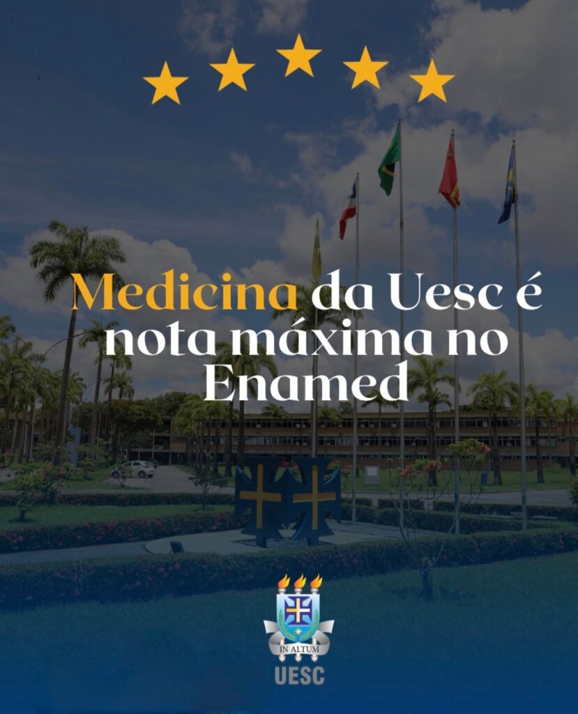 A Universidade Estadual de Santa Cruz (UESC) alcançou o conceito máximo (nota 5) no Exame Nacional de Avaliação da Formação Médica (Enamed 2025), resultado divulgado nesta segunda-feira (19) pelo Ministério da Educação (MEC). Na primeira edição do exame, que avaliou 351 cursos de Medicina em todo o Brasil, a Uesc destacou-se nacionalmente, reafirmando seu protagonismo na formação médica de excelência e no compromisso com a saúde pública.